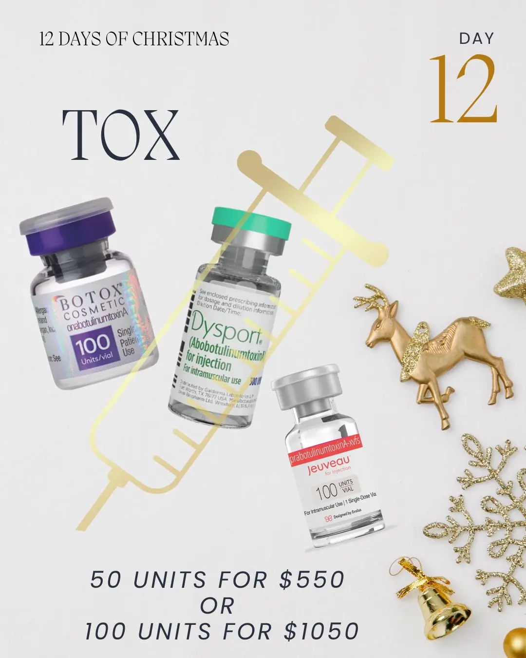 Tox (Botox/Dysport/Jeuveau) 50 units for $550 or 100 units for $1050